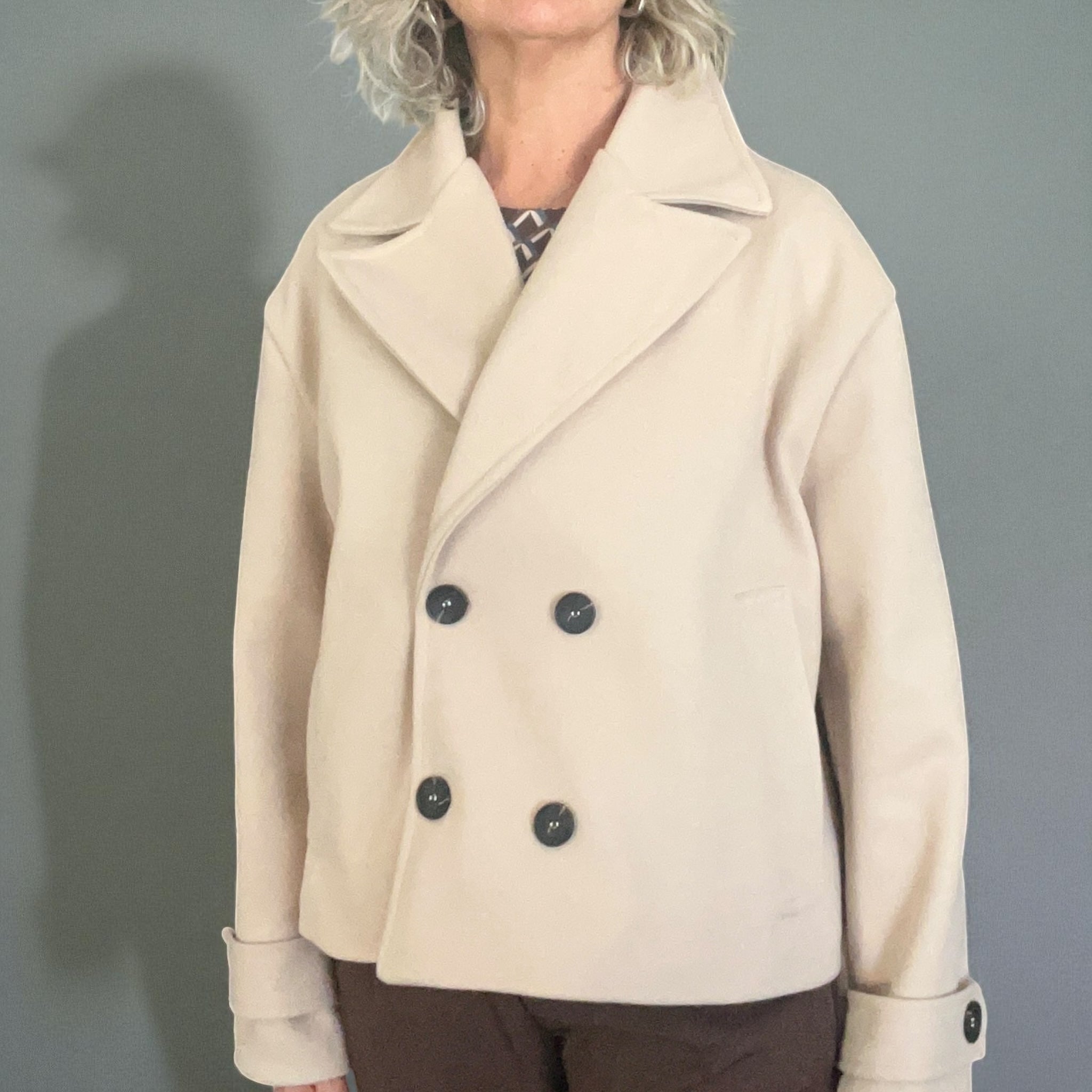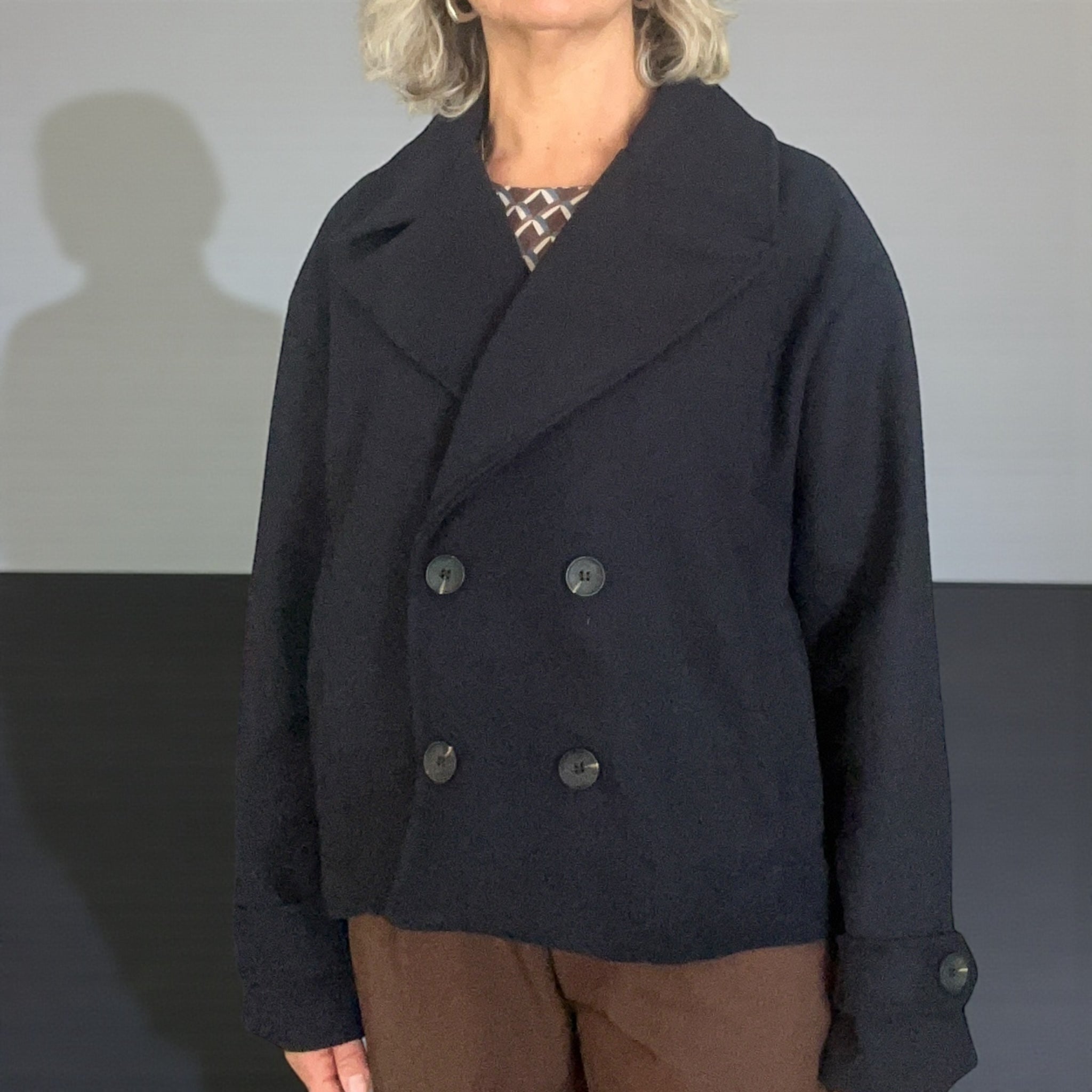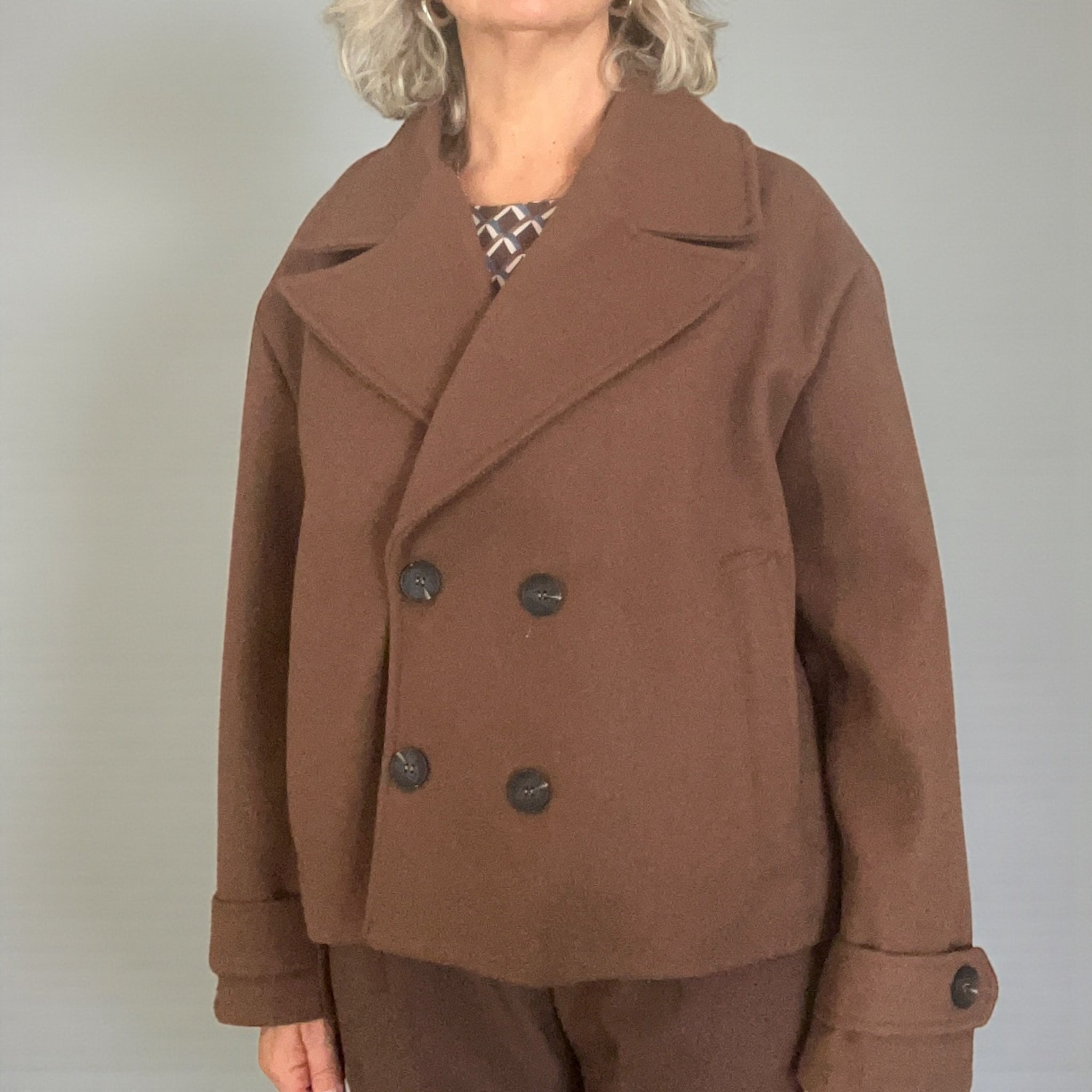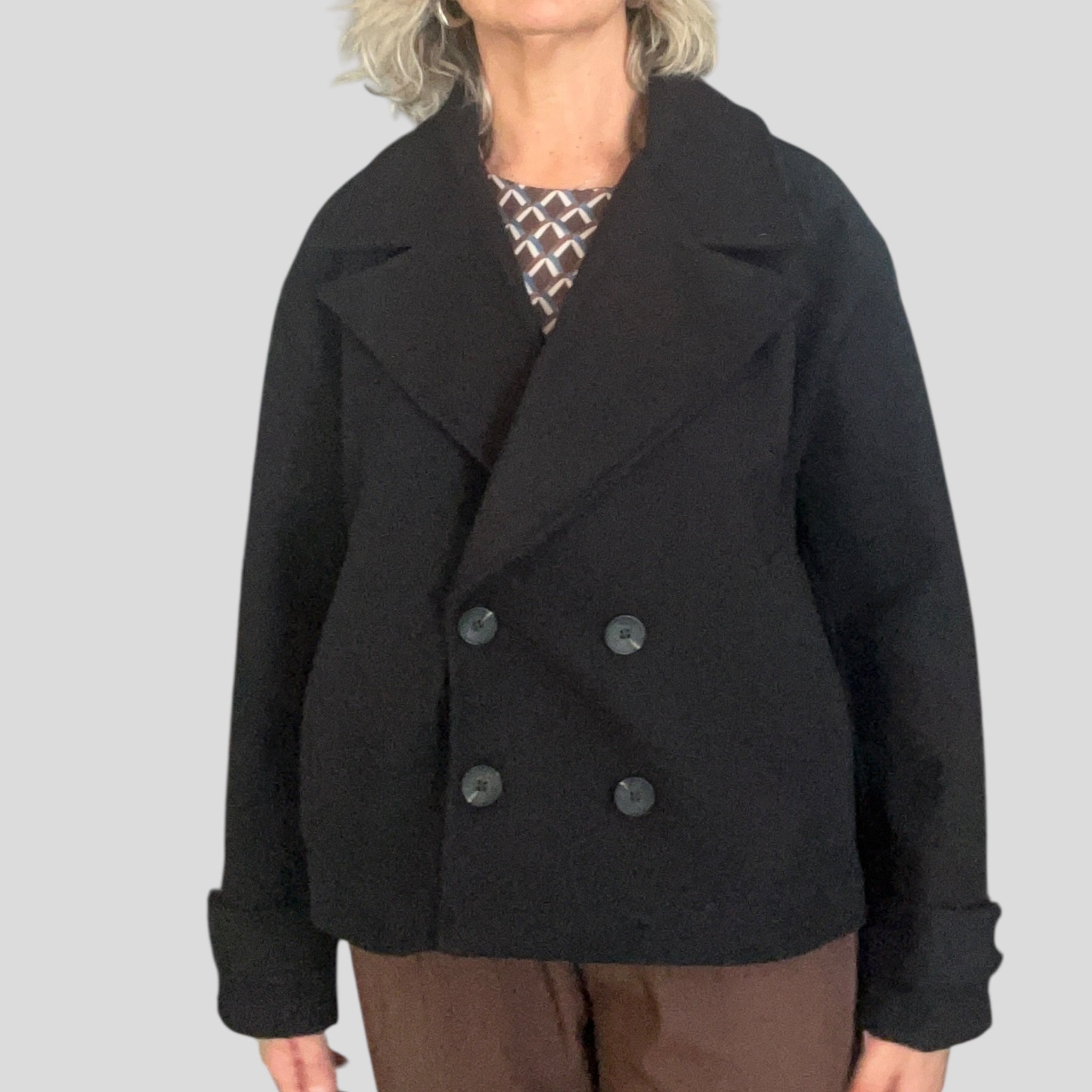 Questo cappottino doppiopetto, dalla vestibilità over 42/48, è perfetto per i bei momenti della stagione fredda e per la mezza stagione. Un capo fatto in Italia, dalla taglia unica, con un design elegante e alla moda con tasche , è l'ideale per affrontare gli inverni miti con stile e comfort.