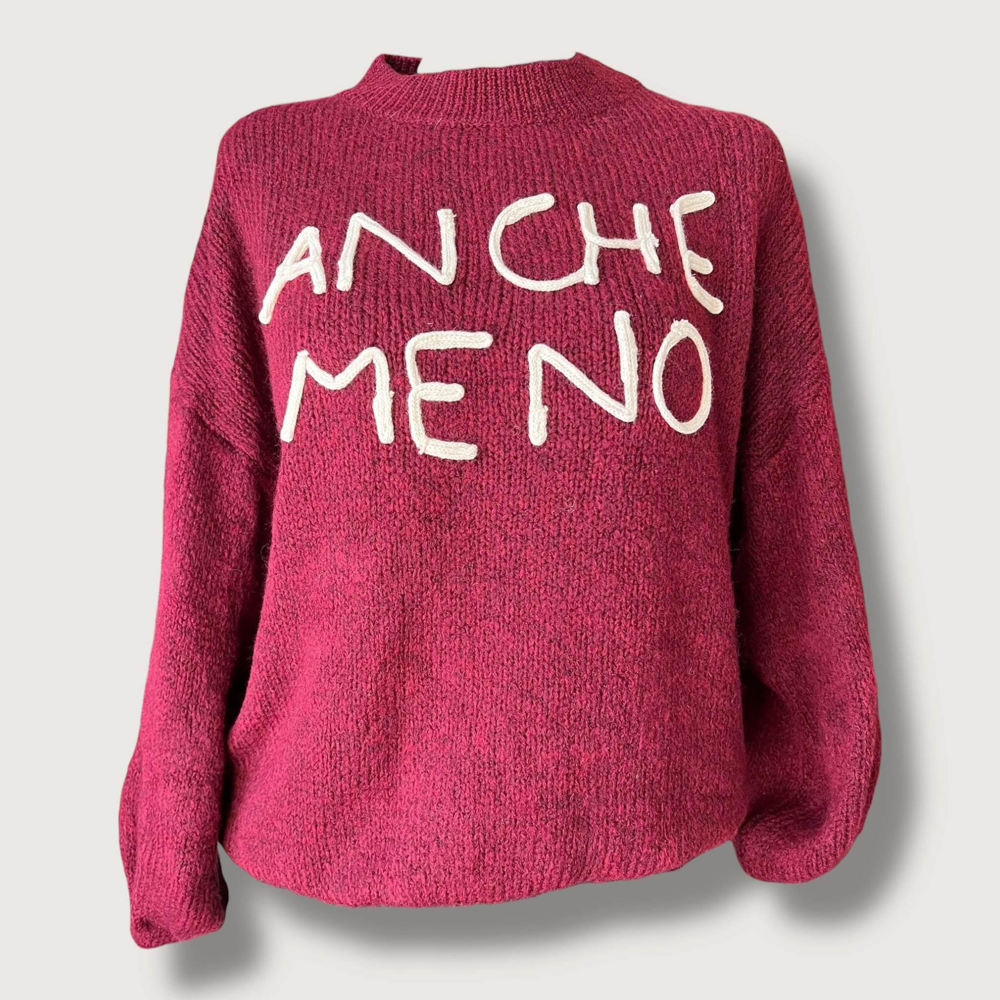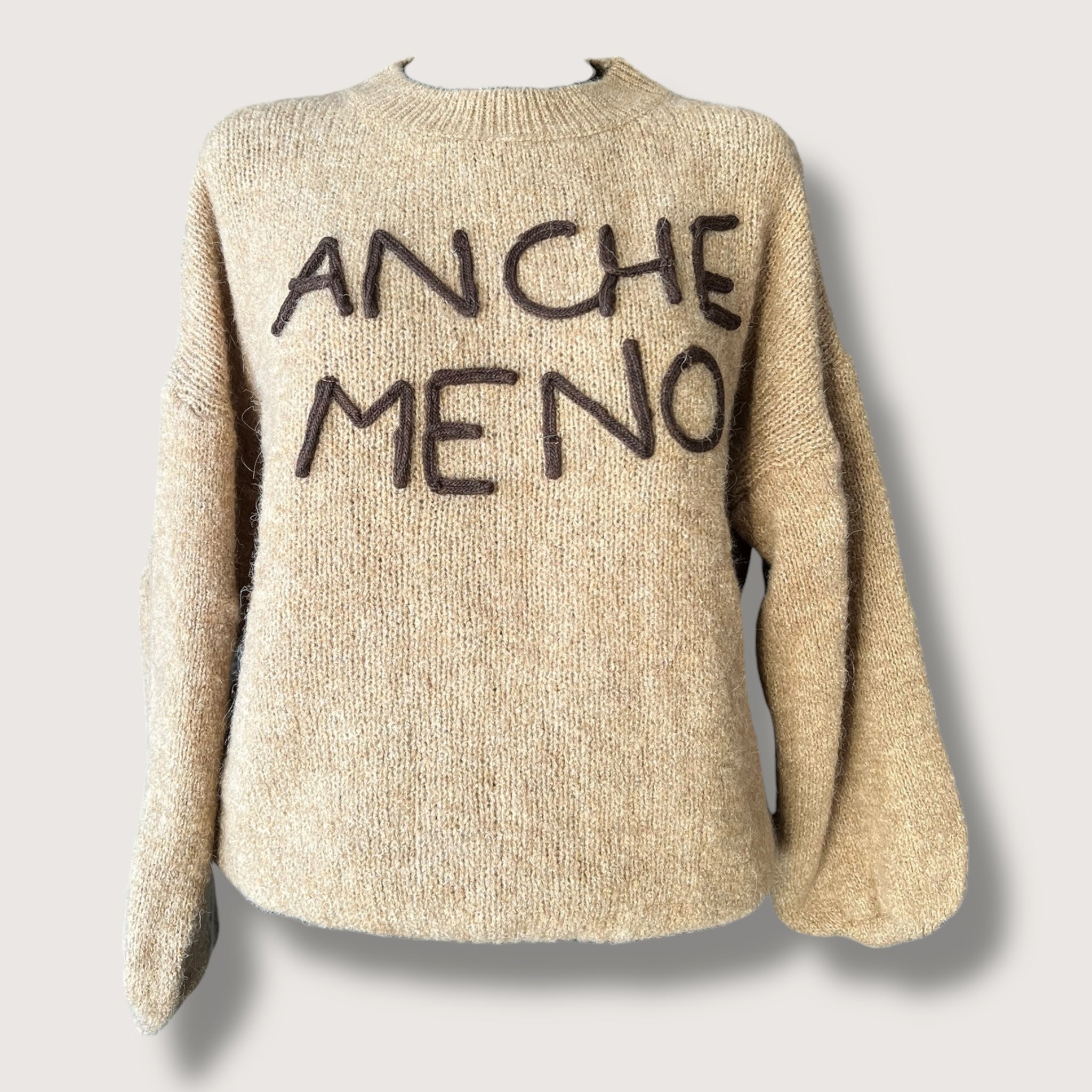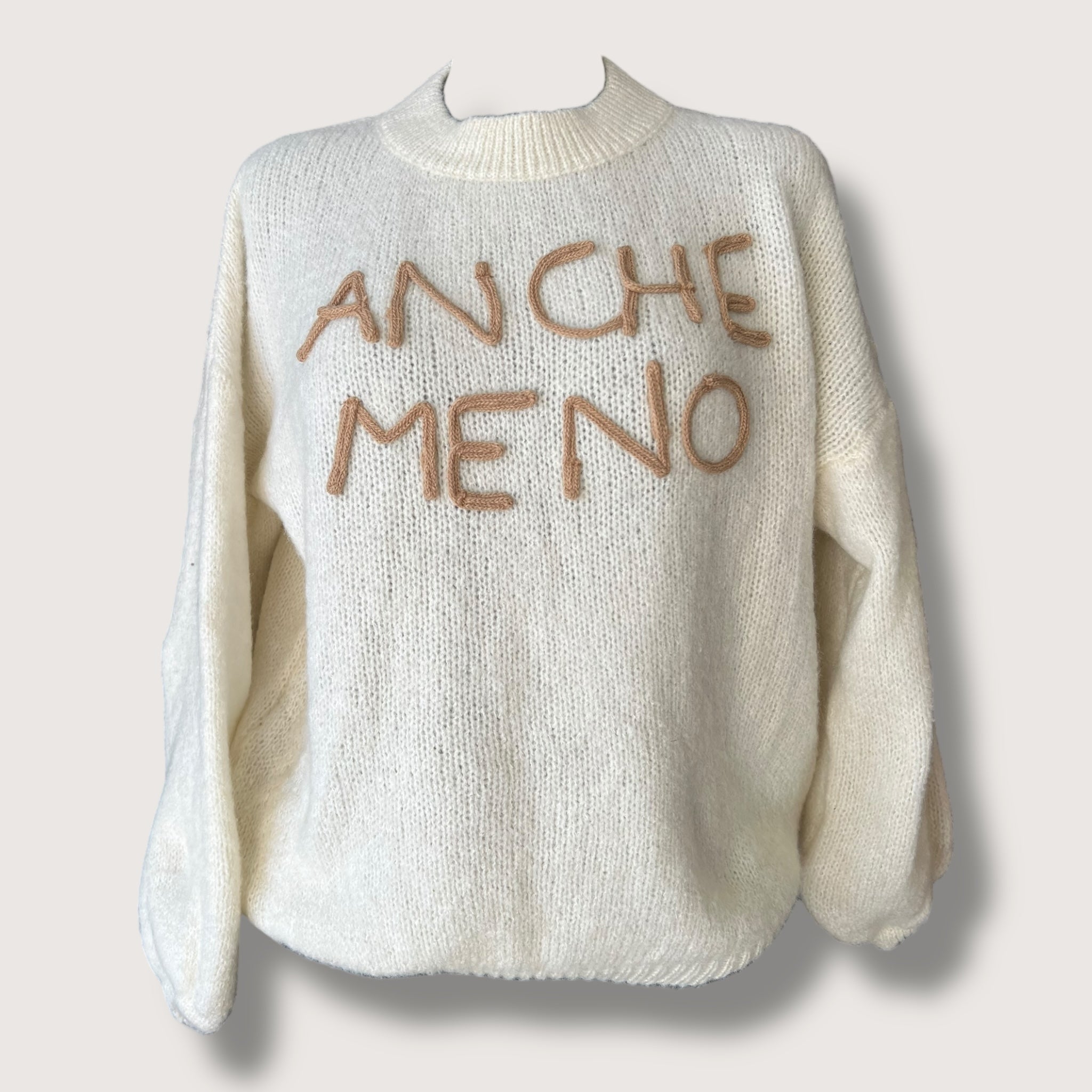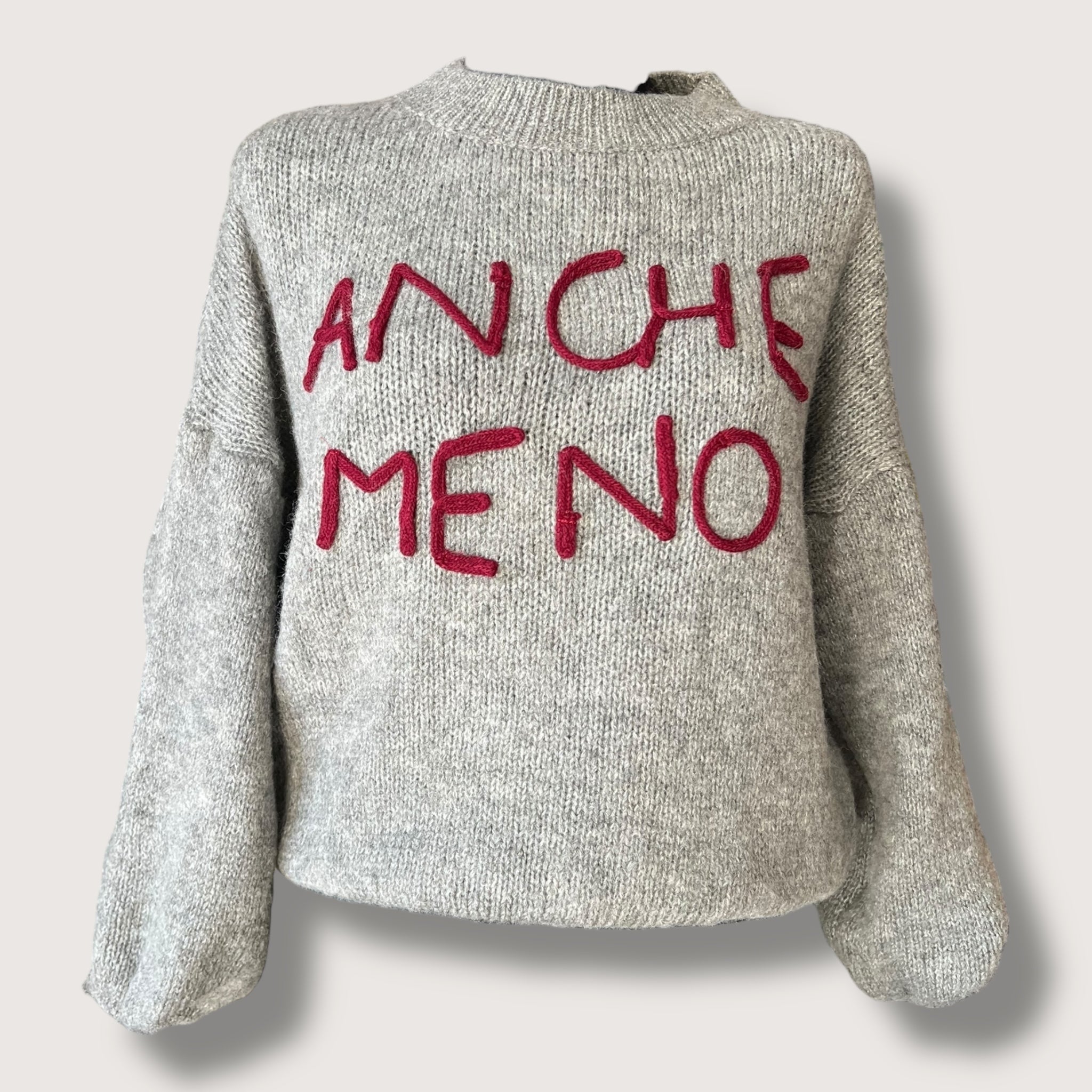 Il Maglioncino con la scritta 'ANCHE MENO' è il capo perfetto per un look caldo e alla moda. Realizzato in misto lana alpaca, è morbido e caldo, perfetto per le giornate più fredde. La taglia unica si adatta a diverse silhouette e il fatto che sia made in Italy garantisce qualità e stile. Affronta l'inverno con stile e comfort con questo maglioncino unico.