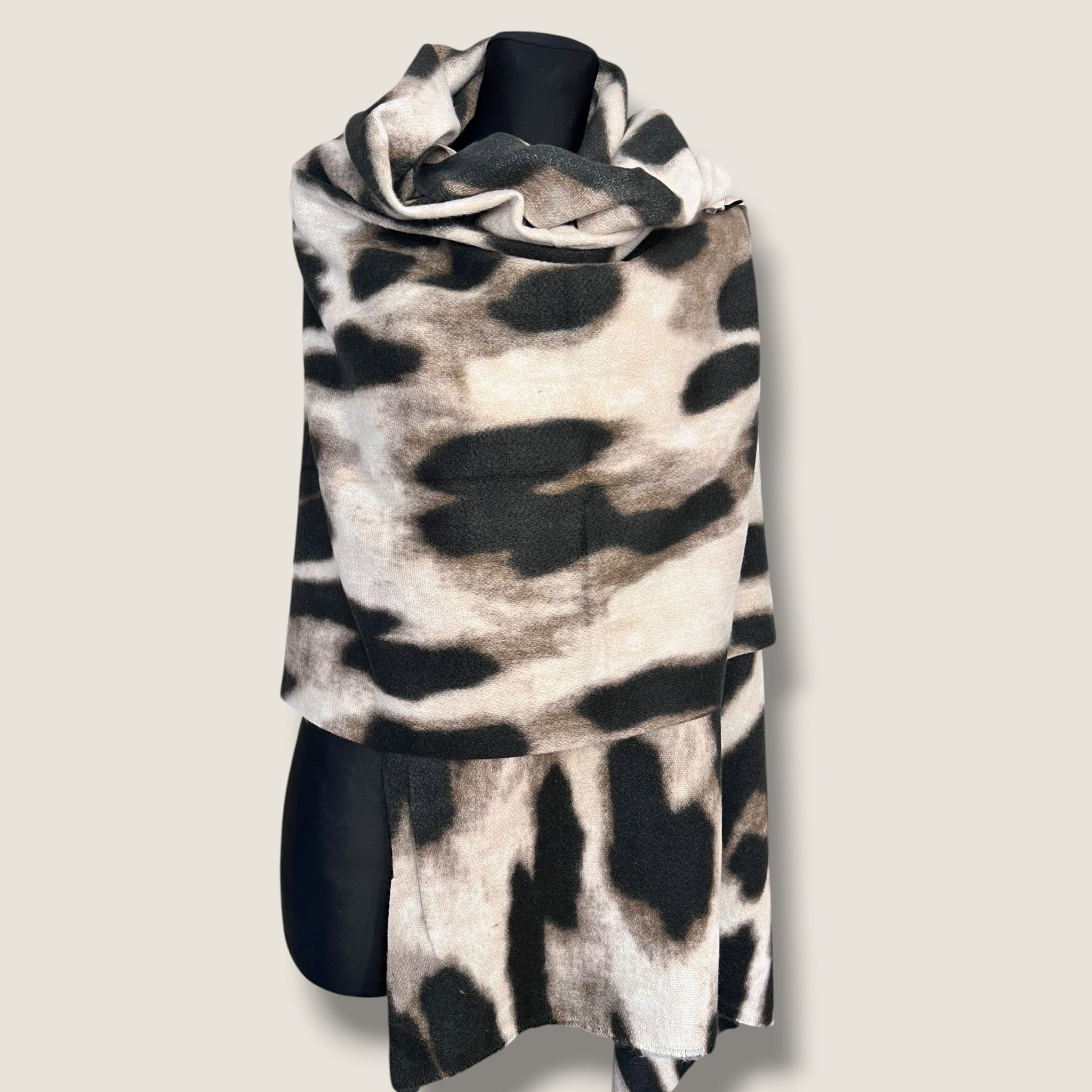 Questa morbida grande avvolgente sciarpa è decorata con una moderna stampa maculata, perfetta per un look casual ma sofisticato. Realizzata in leggero tessuto stola, offre un comfort a tutto tondo senza sacrificare lo stile. Aggiungi un tocco di personalità al tuo outfit con questa sciarpa.