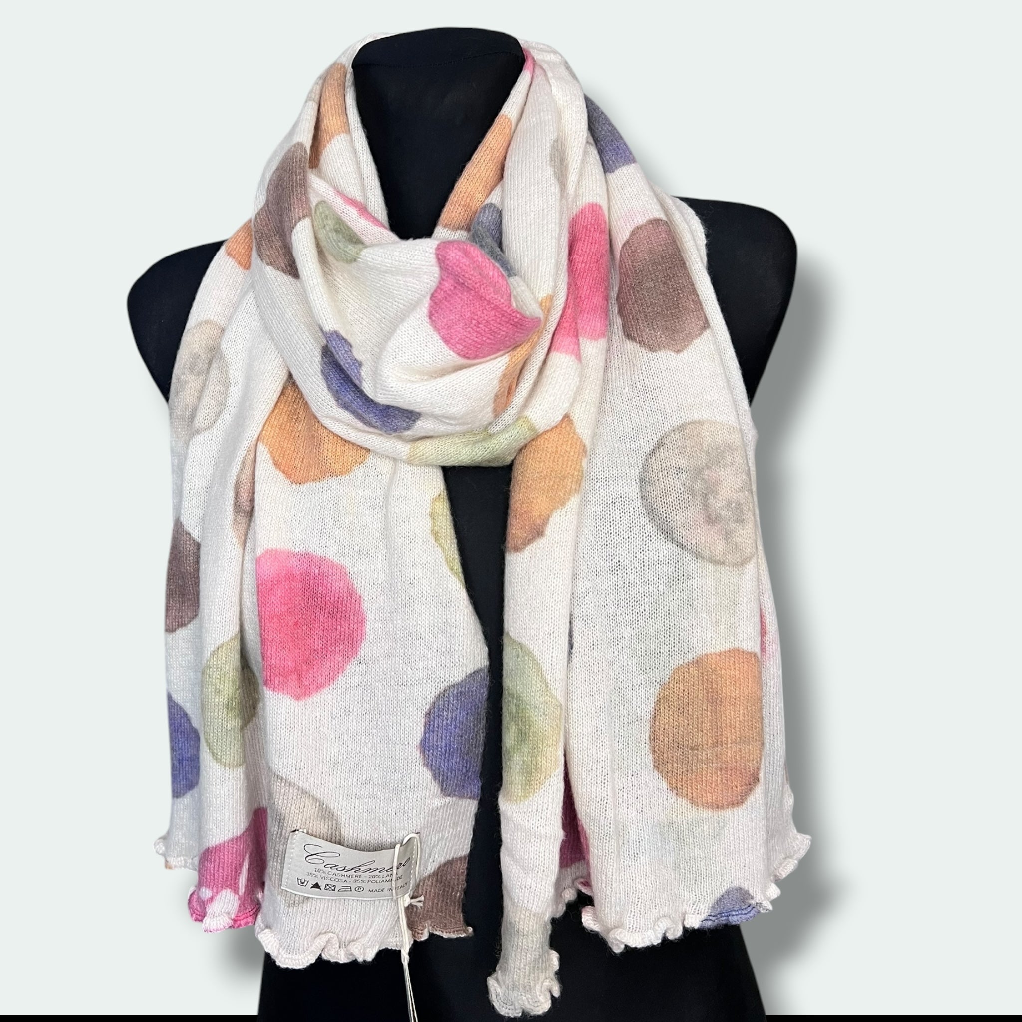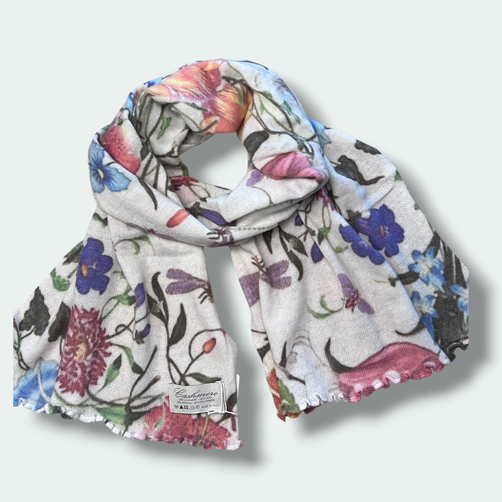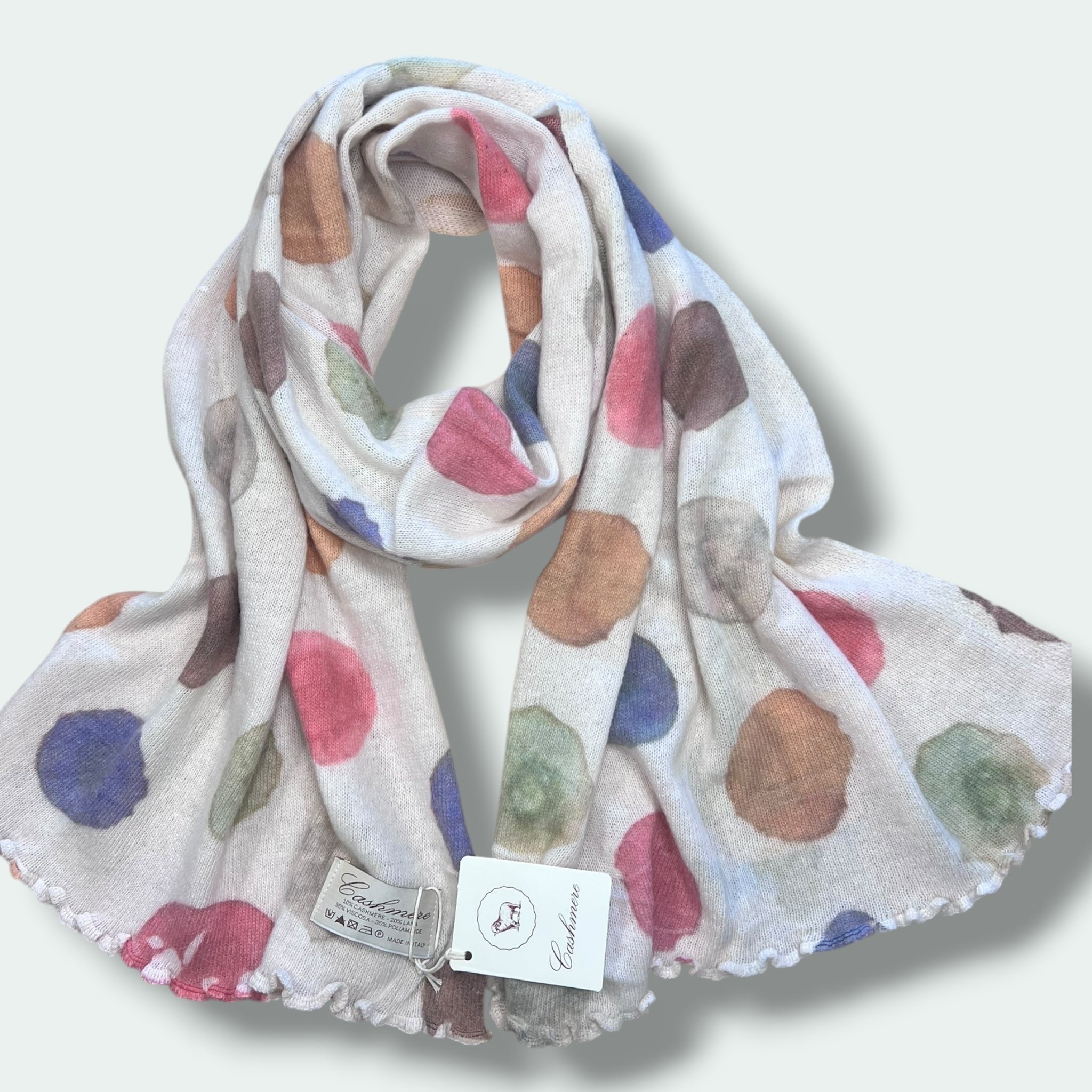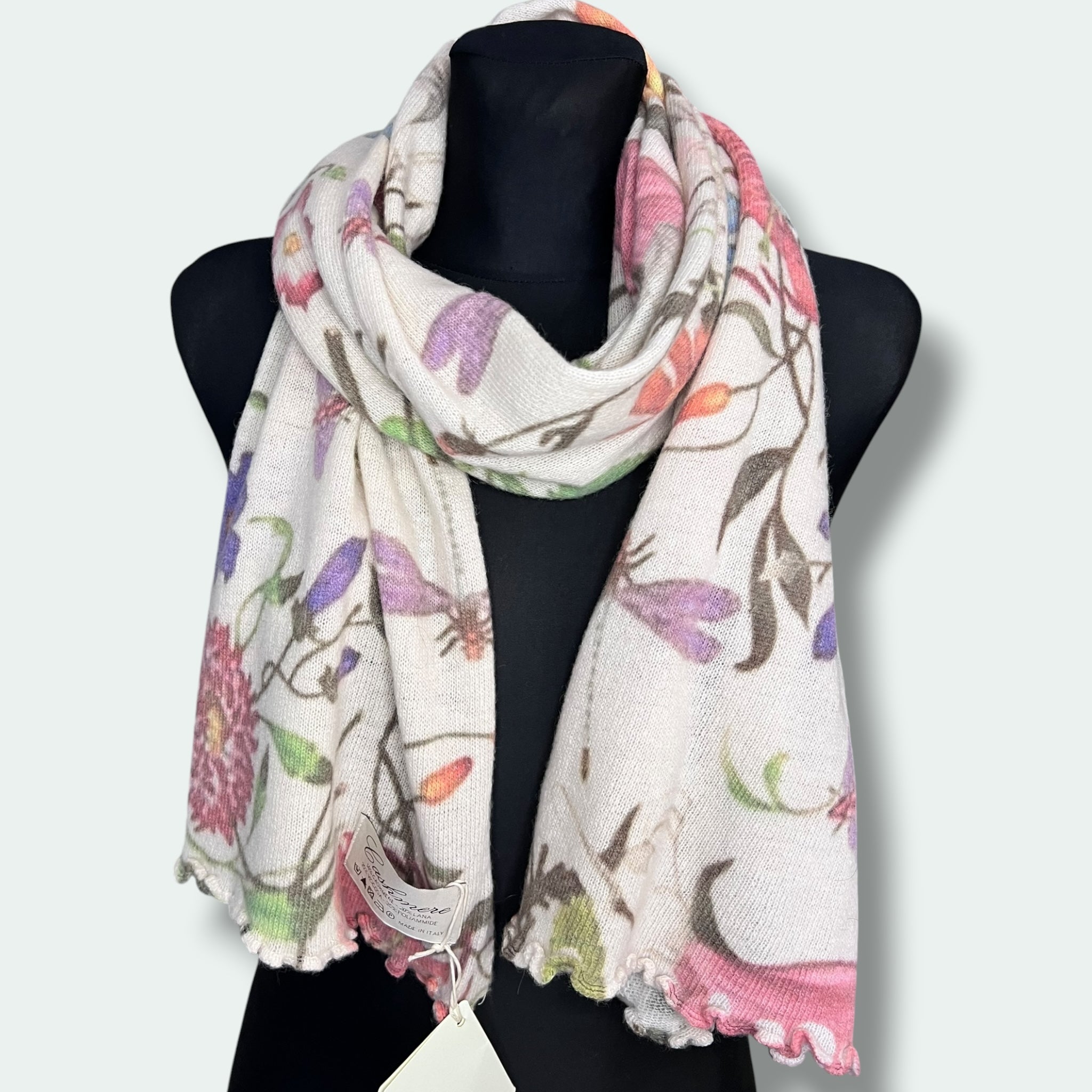 Realizzata in Italia con un mix di lana e cashmere di alta qualità, questa sciarpa stampata presenta una tecnologia di stampa digitale all'avanguardia. La sua combinazione di tessuti di qualità superiore garantisce un calore e una morbidezza eccezionali, mentre la stampa digitale permette di ottenere disegni di alta definizione e resistenza nel tempo. Aggiungi un tocco di stile italiano al tuo look con questa sciarpa unica e di alta qualità.