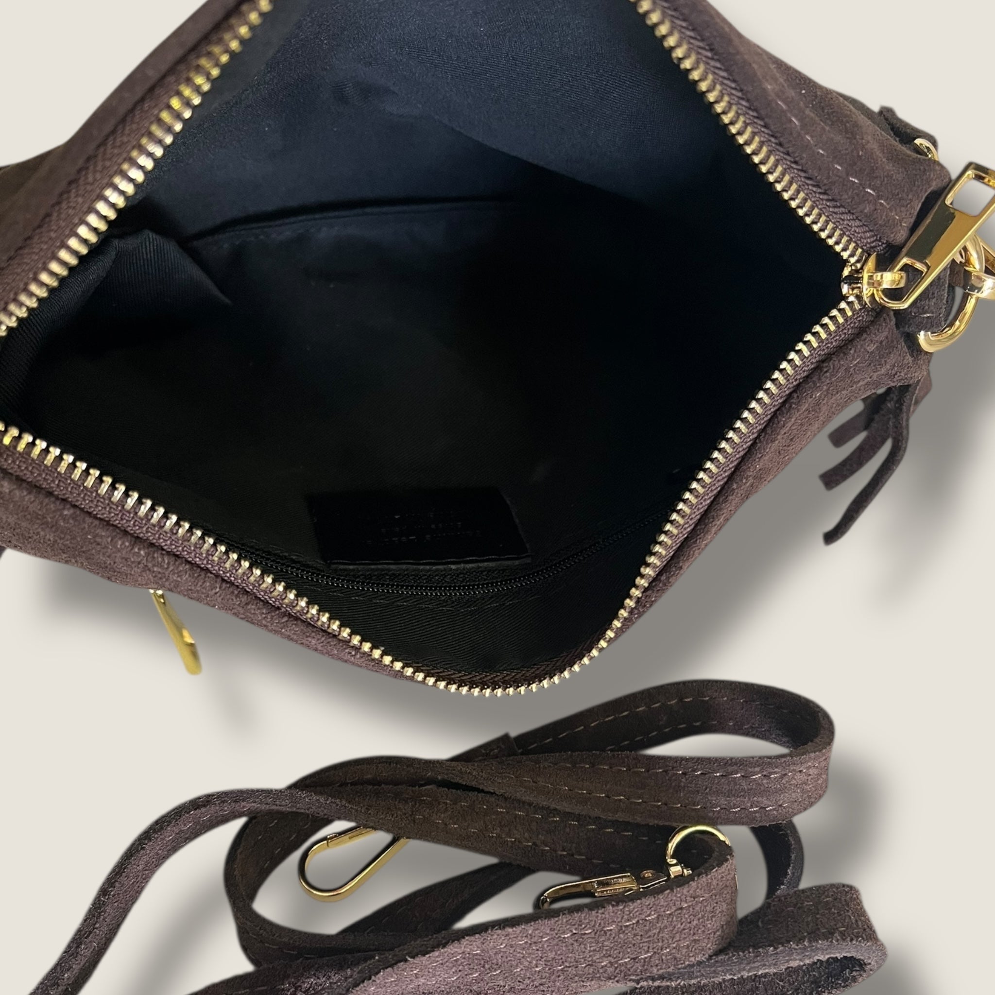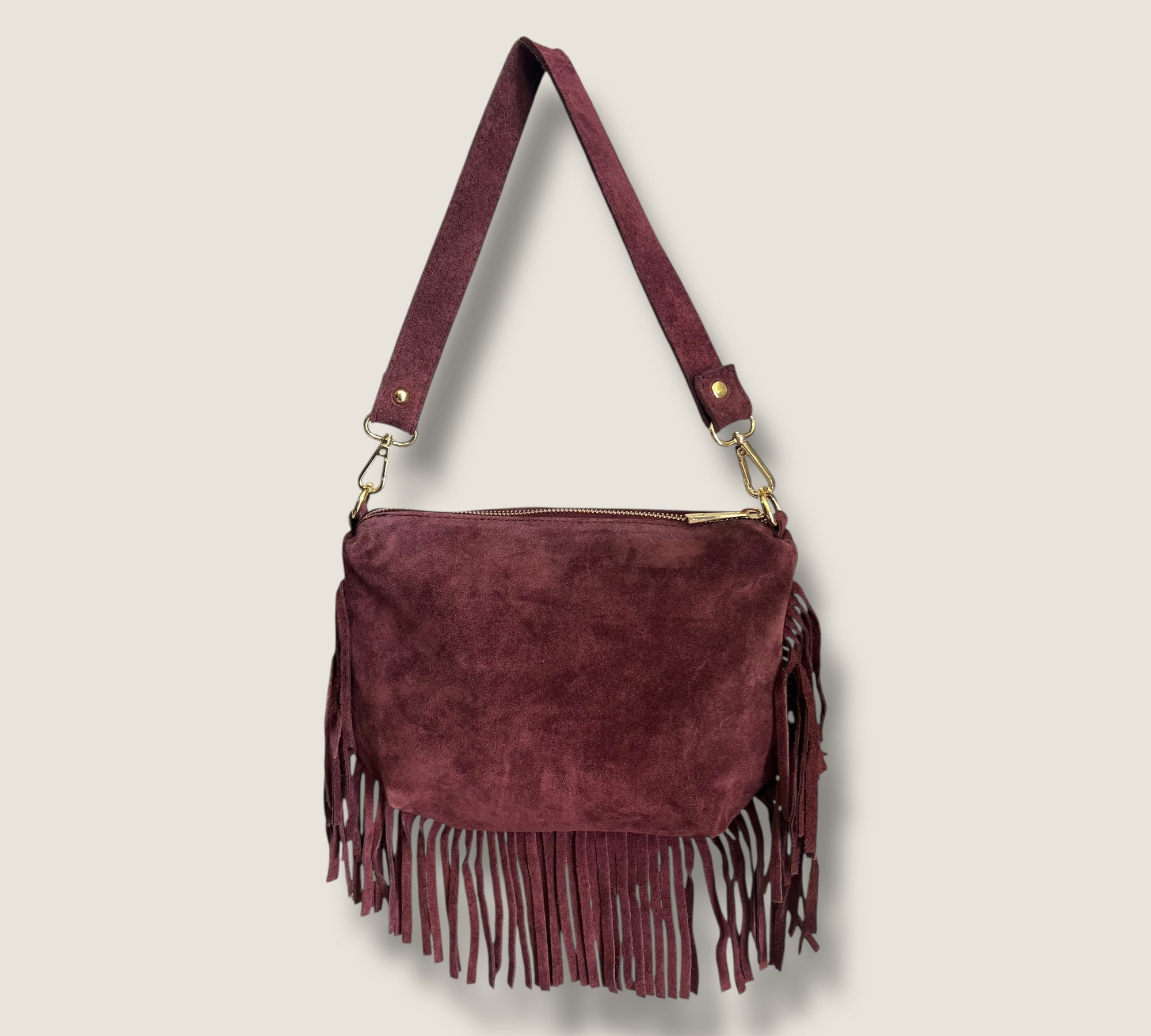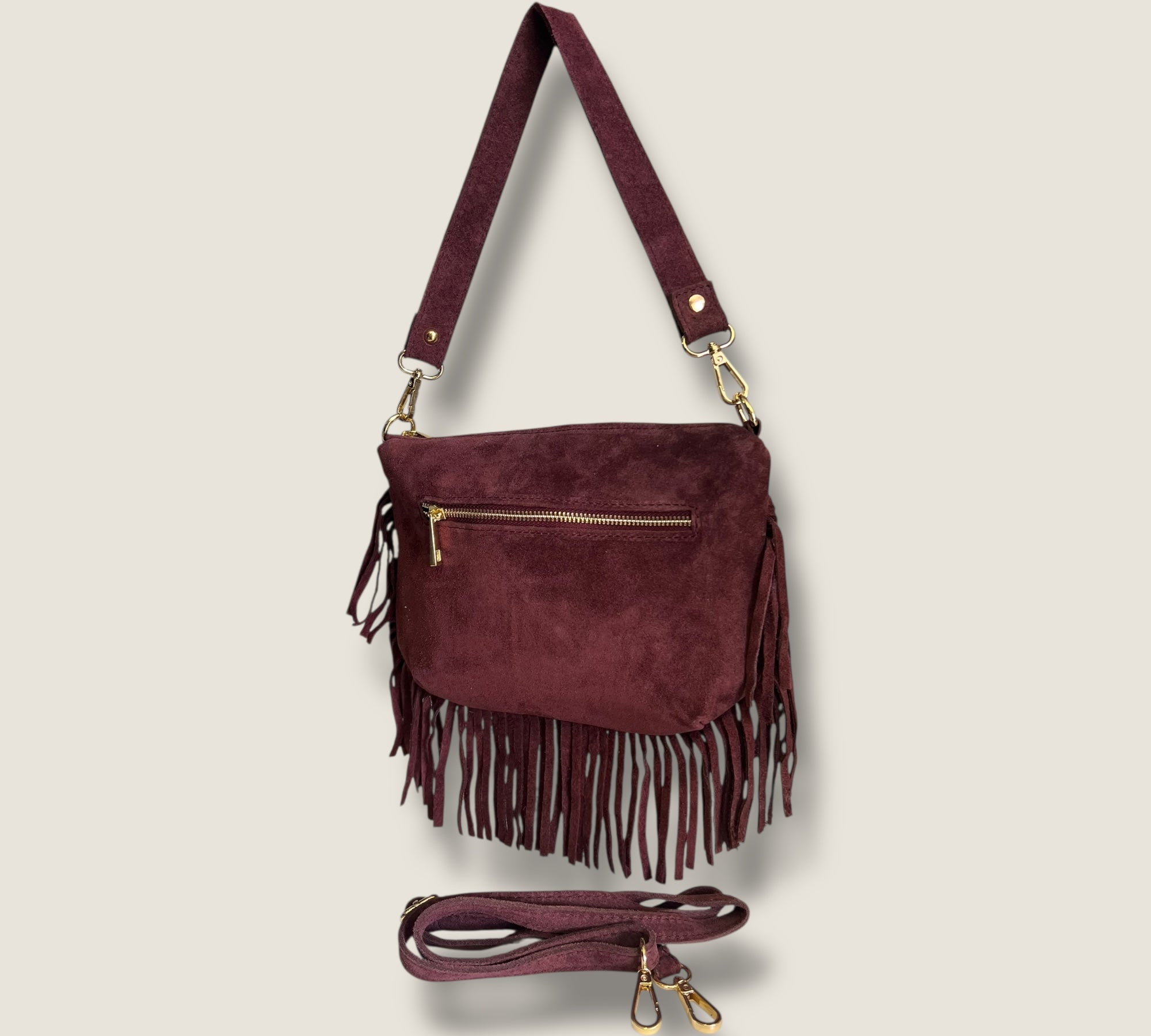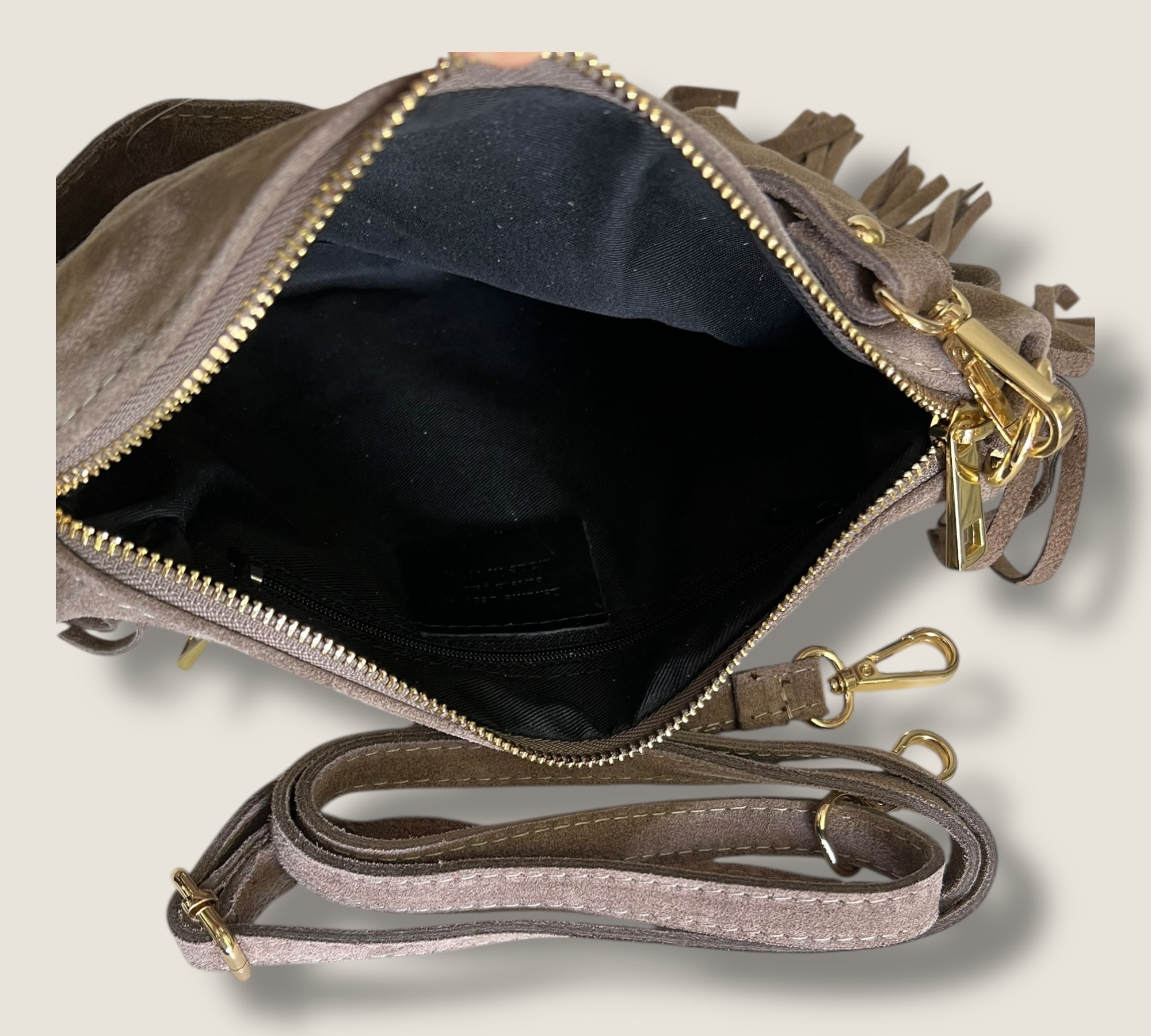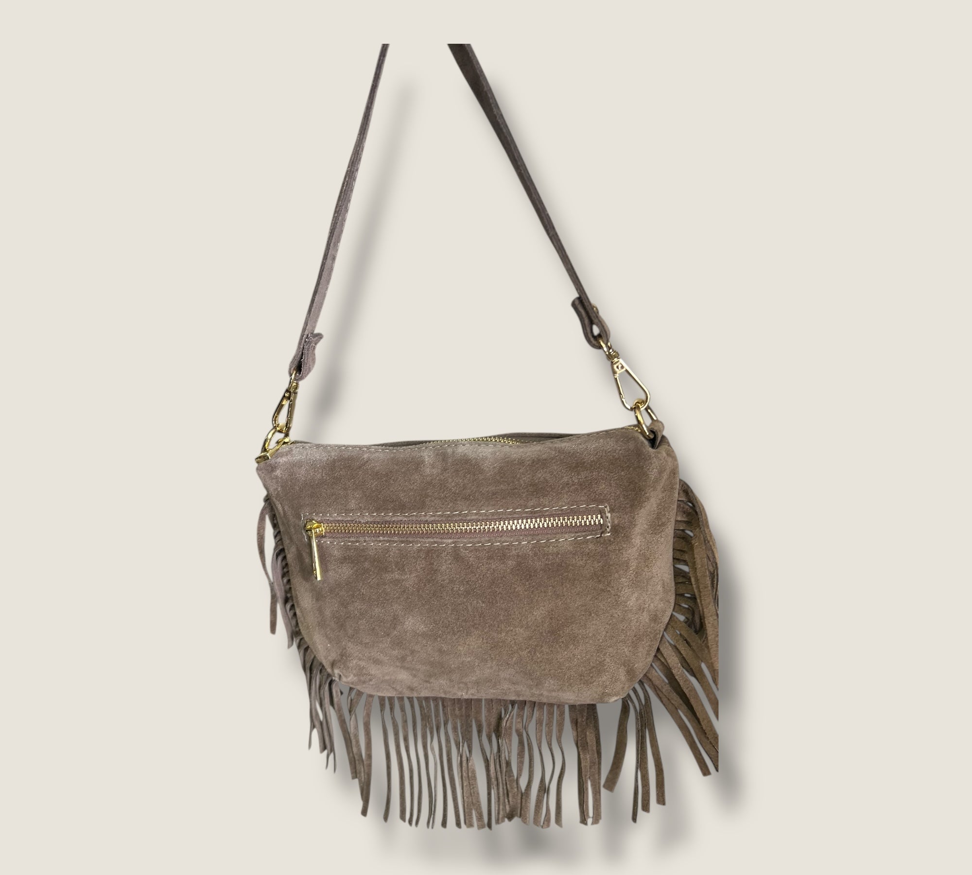 La Borsetta frangia Sara è una borsetta di moda che può essere indossata comodamente sulle spalle grazie alla tracolla in dotazione, Dotata di tasca interna, chiusura cerniera e comoda tasca posteriore con chiusura cerniera .Realizzata interamente in Italia, garantisce un look elegante e di tendenza. Ideale per completare il tuo outfit con stile e comfort