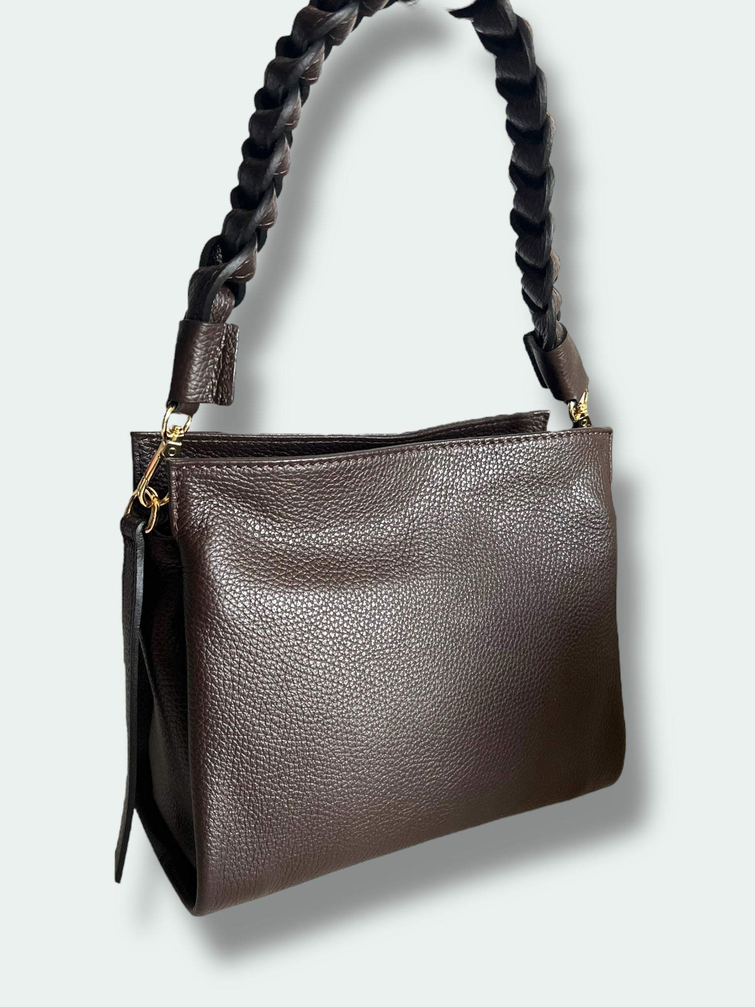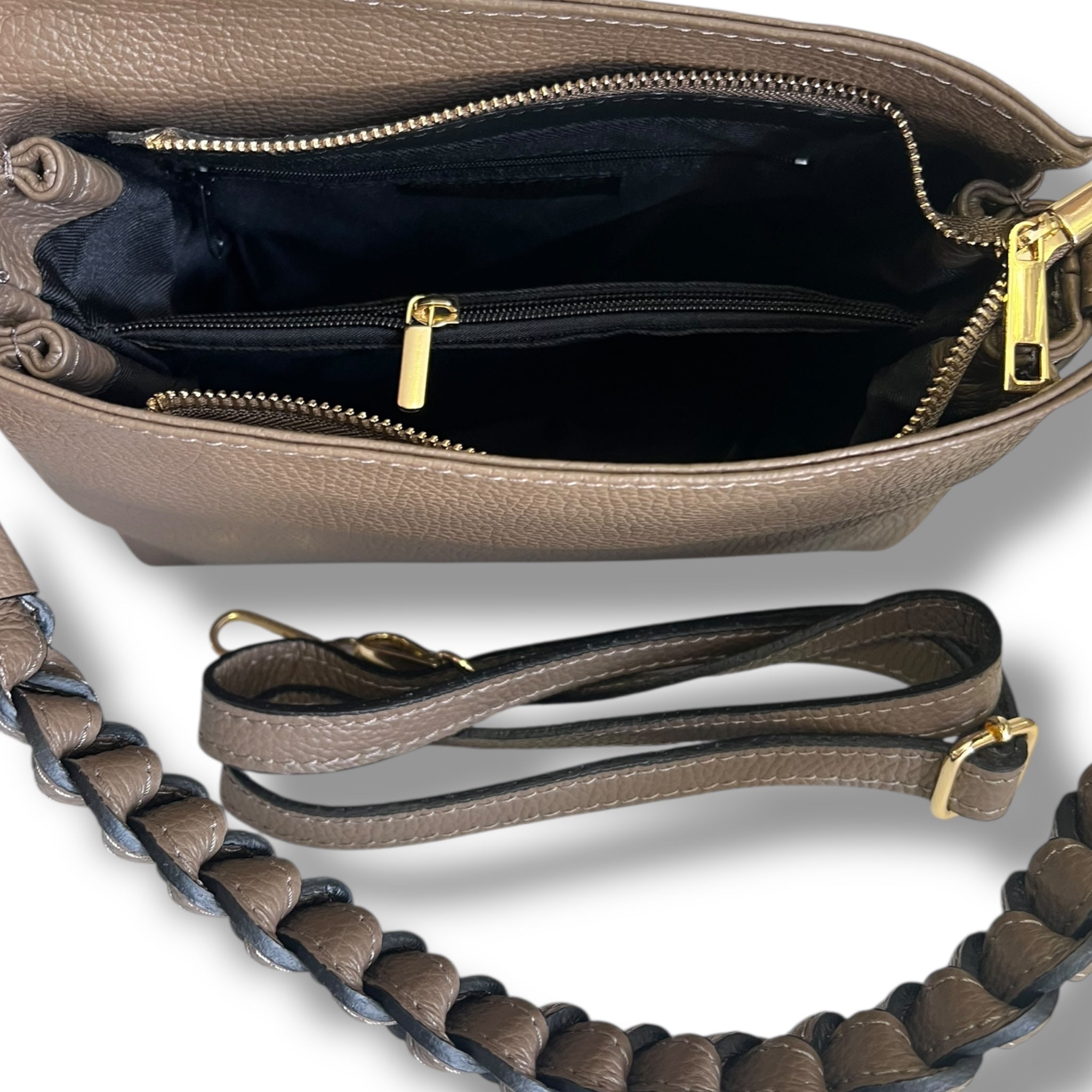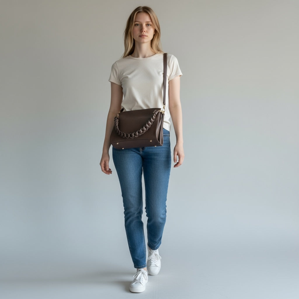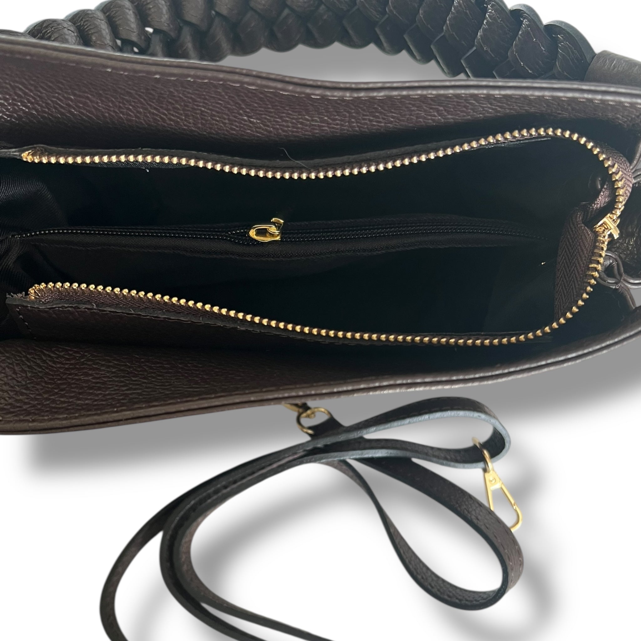 Una borsa elegante e di alta qualità, perfetta per aggiungere un tocco di stile a qualsiasi look. Realizzata in pelle pregiata e con un manico intrecciato a mano, questa borsa è fatta in Italia per garantire la massima qualità. Con doppioscomparto interno con cerniera e una chiusura a cerniera, è anche dotata di una tracolla per una maggiore versatilità.